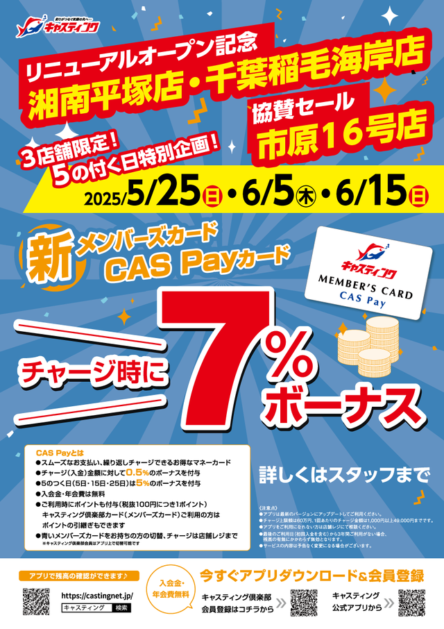 湘南平塚店のリニューアルオープンを記念いたしましてCASPayへのチャージボーナスがUP!