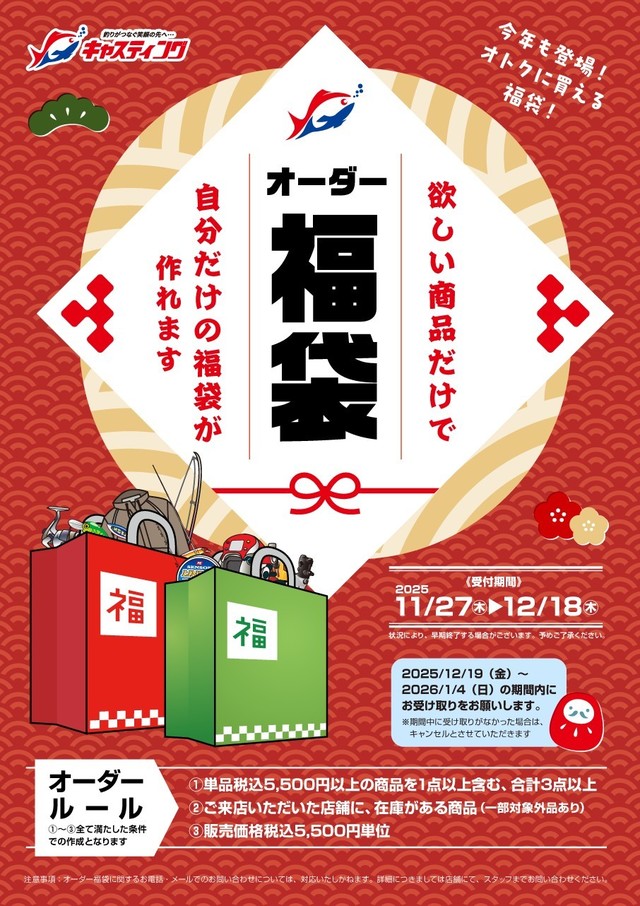 毎年恒例のオーダー福袋、本日より受付スタートいたしました。
