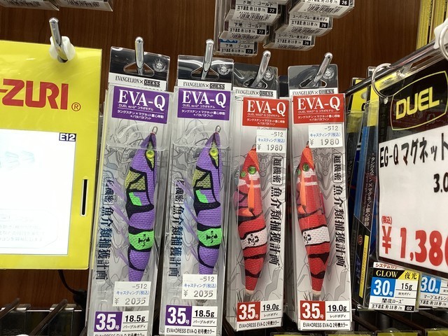 また、人気のエヴァコラボのエギも店頭に並んでいますのでこちらもお見逃しなくー♪