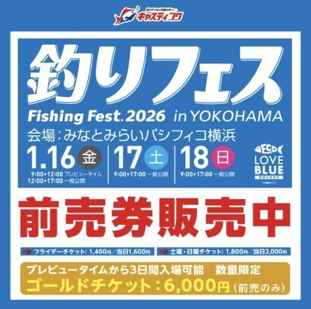 釣りフェスの前売りチケットですが、金曜日(フライデーチケット)が完売してしまいました<m(__)m>