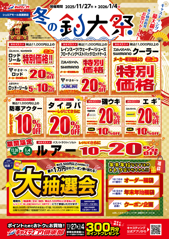 1/4までキャスティング最大級!「冬の釣大祭」開催中!