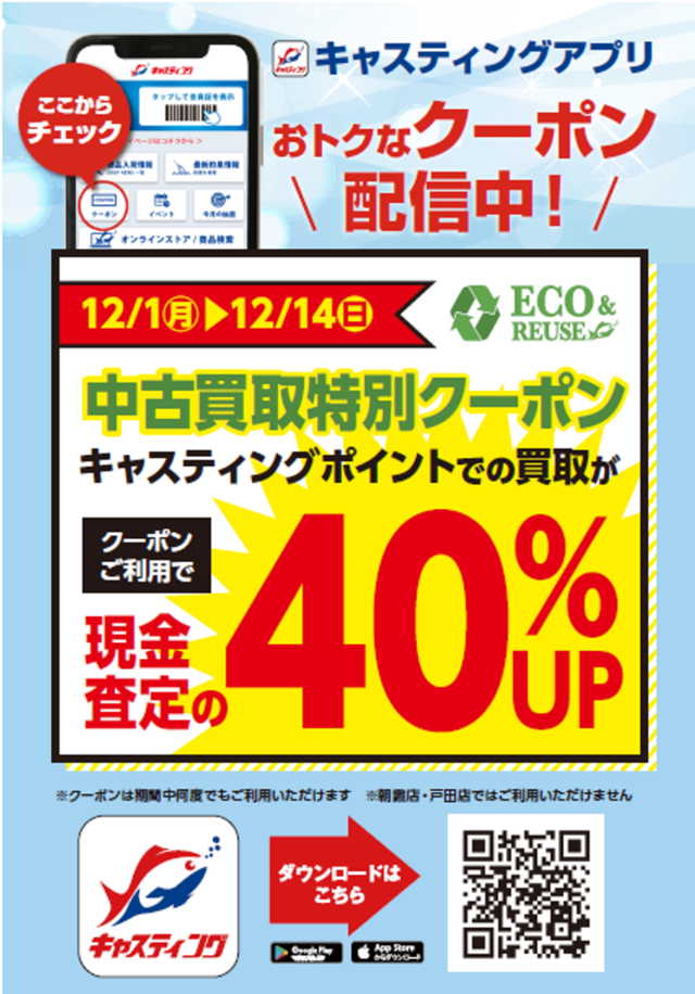 キャスティングアプリにご登録いただいているお客様へ「中古買取特別クーポン」を配信しておりますっ!