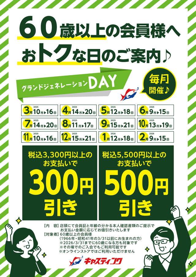 60歳以上の会員様、お会計時に身分証をご提示の上