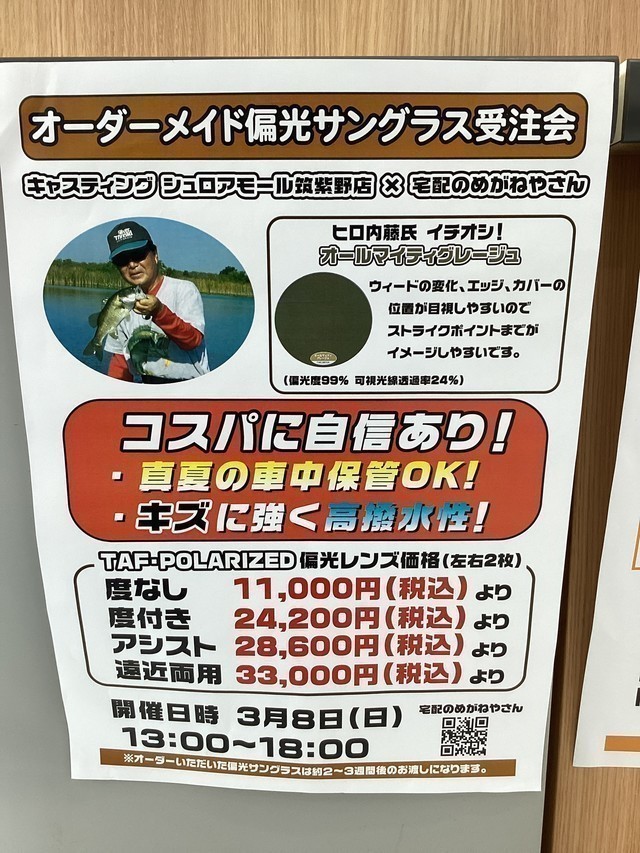 そんな”釣りの為”に作成された偏光レンズ「タフ・ポラライズ」をイベント当日は受注できます!