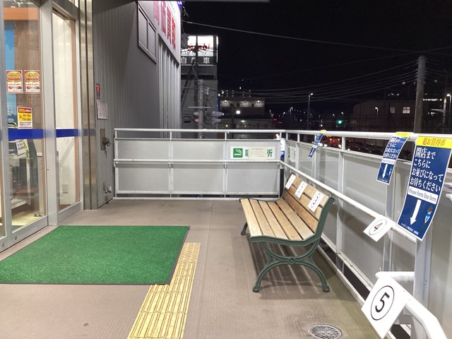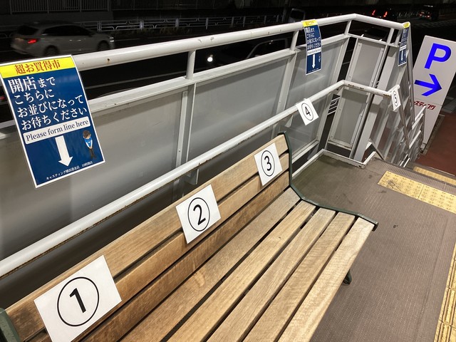 開店前に並ばれる場合は階段を上がった正面出入り口前で順番にお待ち下さいますようお願いいたします。