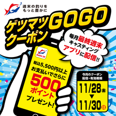 ゲツマツGOGOクーポンのご利用は本日11/30(日)まで!!