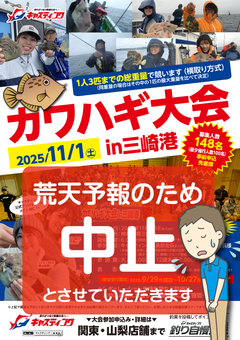 ※荒天予報の為中止となりました※2025/11/1(土) キャスティングカワハギ大会 in三崎港