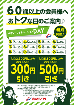 60歳以上の会員様へお得な日のご案内です♪【グランドジェネレーションDAY】