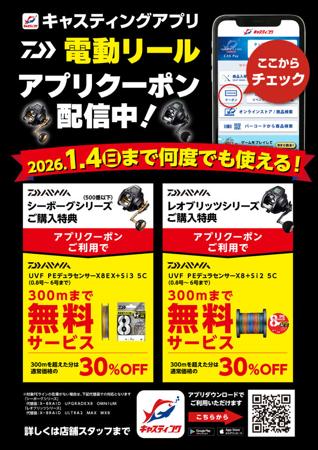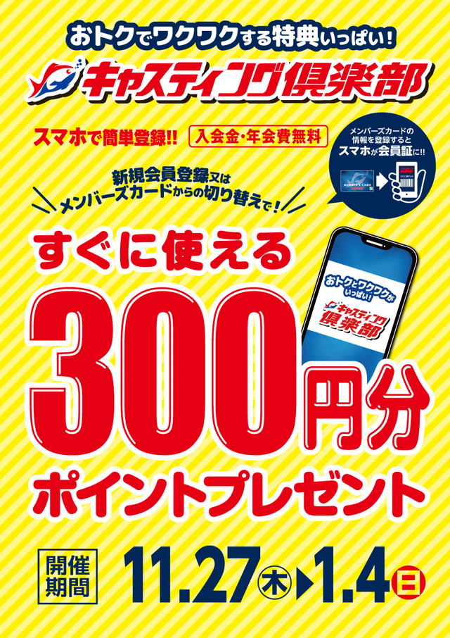 キャスティング倶楽部新規会員登録及び切替えですぐに使える!《300ポイント》プレゼント開催中の泉バイパス店に是非お越し下さい!