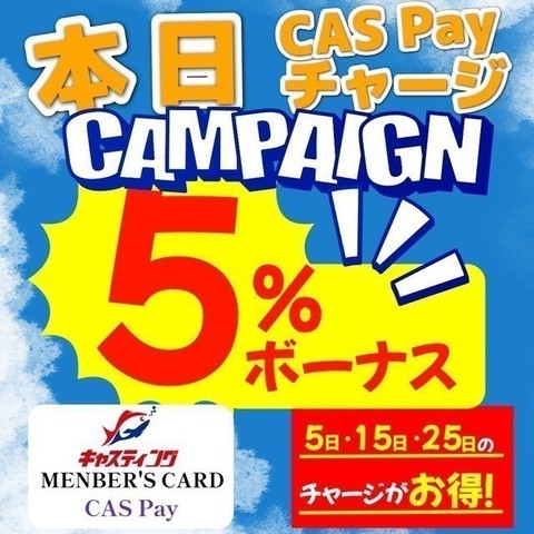 5のつく日は「5%」のボーナスを付与!新メンバーズカード【CAS Payカード】登場♪岩槻インター店