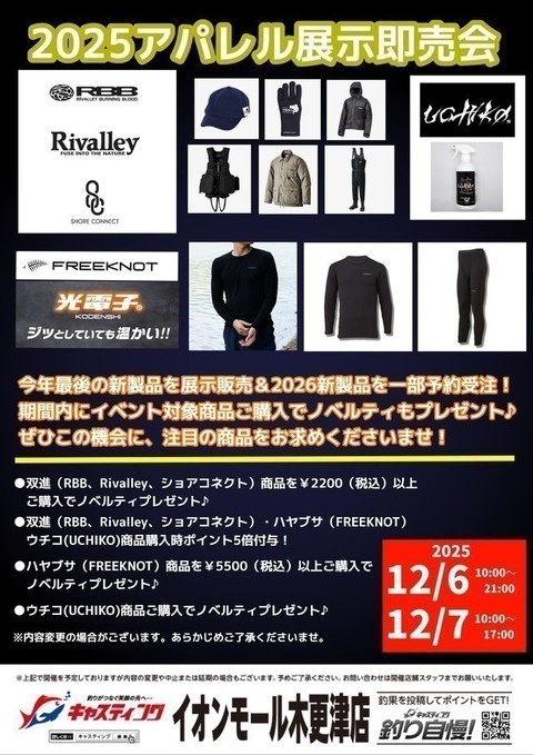 イオンモール木更津店@12/6・12/7は【双進・ハヤブサ・UCHIKO合同アパレル展示即売会】開催!