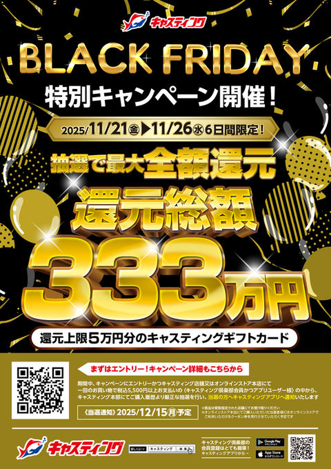 11/21(金)~11/26(水)【BLACK FRIDAY(ブラックフライデー)特別キャンペーン】開催中!!
