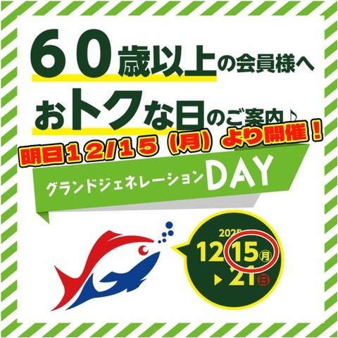 今月のグランドジェネレーションDAYは、12月15日~12月21日迄!