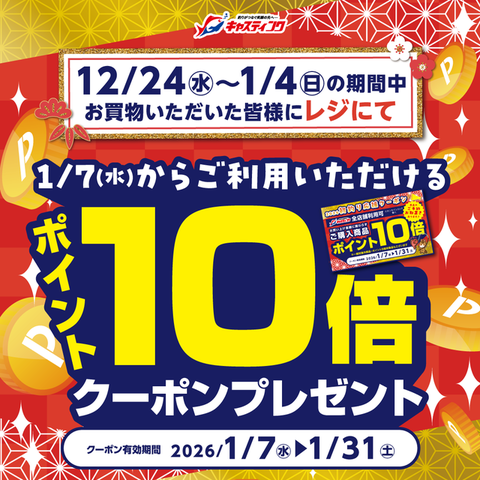 本日から1/31(土)まで【ポイント10倍券】ご利用いただけます!!