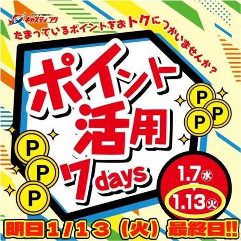 ポイント活用7daysキャンペーン、1/13(火)本日まで!!
