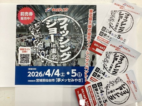 【2026フィッシングショーin東北】本日より店頭にて、前売り紙チケット販売スタートですっ!