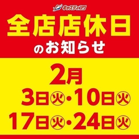全店【2月の下記日程を全店店休日】とさせていただきます。