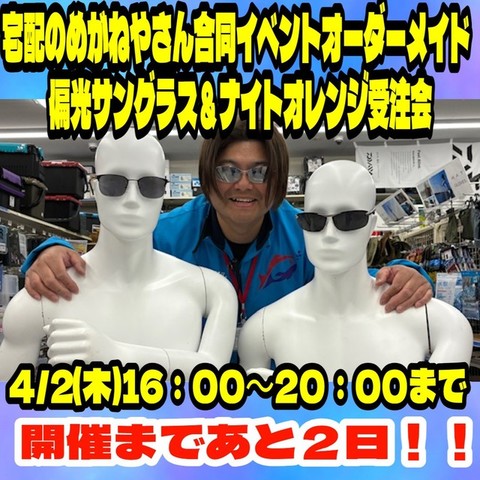 宅配のめがねやさん合同イベント「オーダーメイド偏光サングラス&ナイトオレンジ受注会」開催まであと残り2日!!