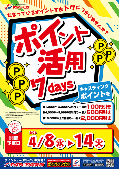 4/8(水)から『ポイント活用7daysキャンペーン』開催です!!