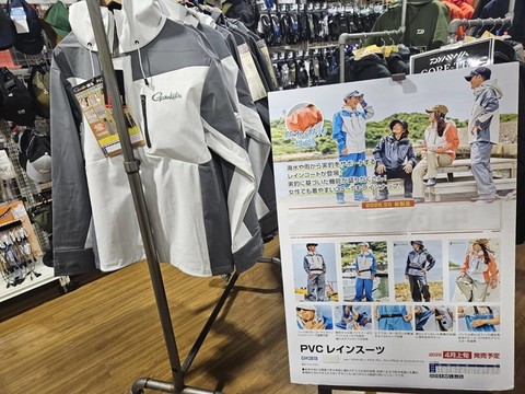 新大宮バイパス店 がまかつ新製品PVCレインスーツ各色・各サイズ入荷しました。