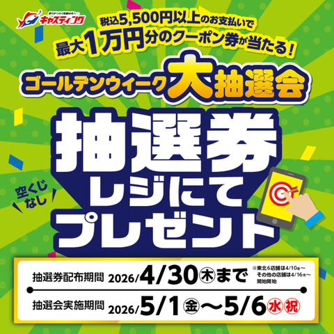 ☆空くじなし♪最大1万円分のクーポン券が当たる!『GWセール』の抽選券配布中~4/30(木)迄!!☆