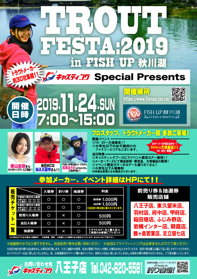 HOME > イベント予定 > トラウトフェスタ2019 in FISH UP 秋川湖