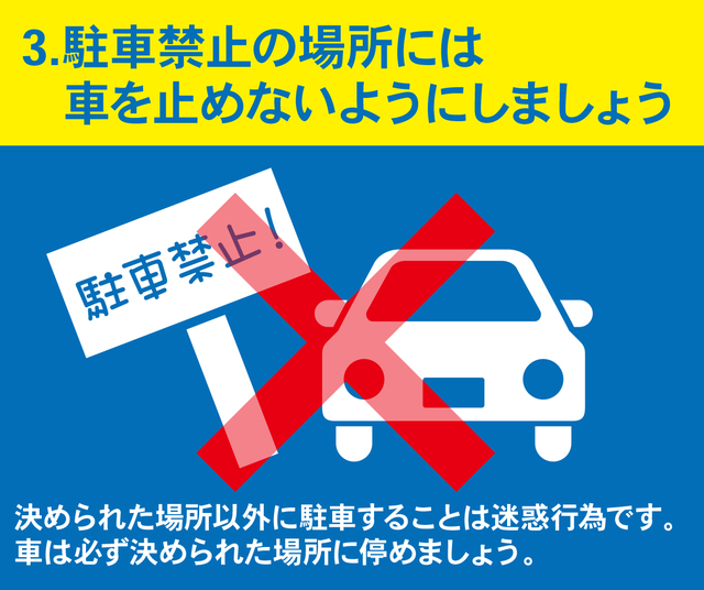 3.駐車禁止の場所には車を止めないようにしましょう