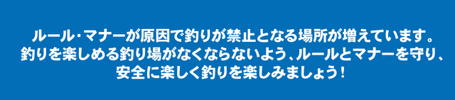 釣りを楽しめる釣り場がなくならないよう、ルールとマナーを守り、安全に楽しく釣りを楽しみましょう!