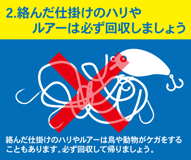 2.絡んだ仕掛けのハリやルアーは必ず回収しましょう