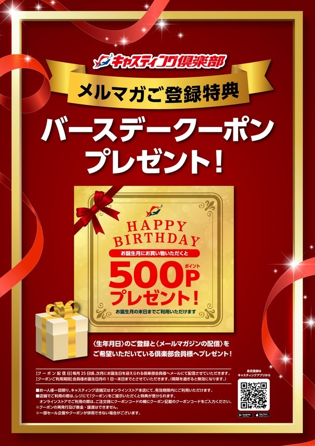 ※バースデークーポンはキャスティング倶楽部にご登録いただいている生年月日をもとに配信しております。ご登録が無い場合はメールの配信を行っておりませんのでご了承ください。