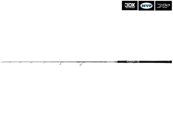 標準全長(m):1.88 継数(本):1 仕舞(cm):188 標準自重(g):188 先径(mm):2.4(2.4) 元径(mm):8.9 Jig/Cast Wt:70-180 適合ライン(号):2.5-4 カーボン含有率(%):97