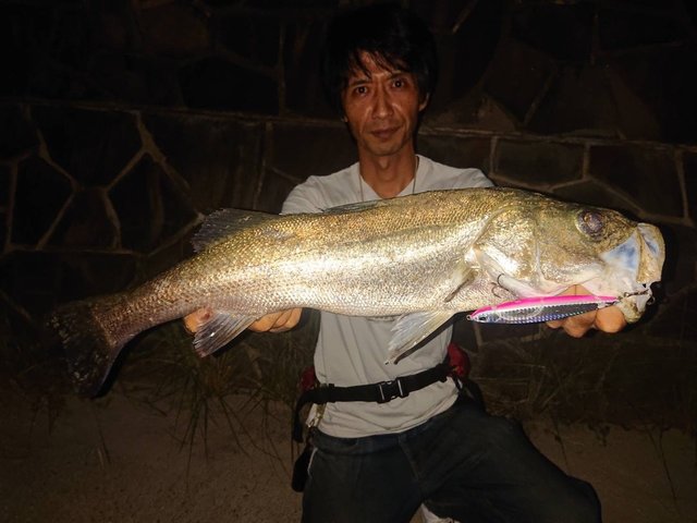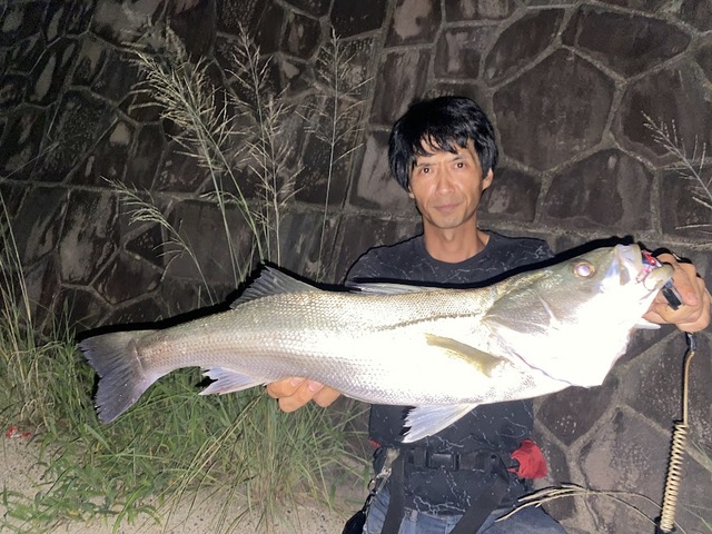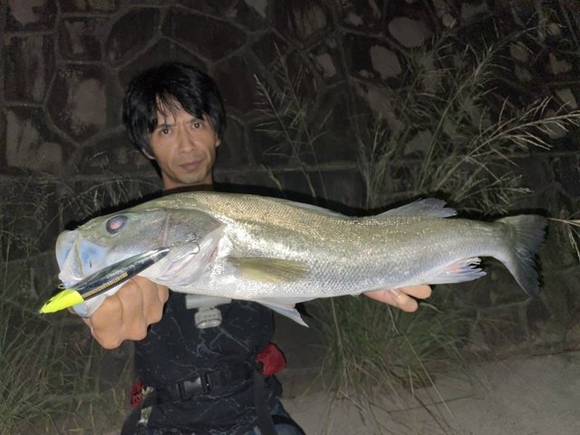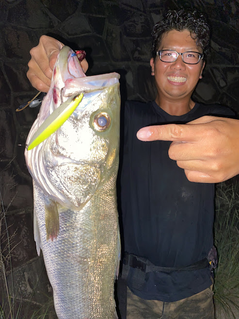 スタッフ福嶋もヒット連発し、サーフェイスコントローラー118Fでシーバスをキャッチしました。