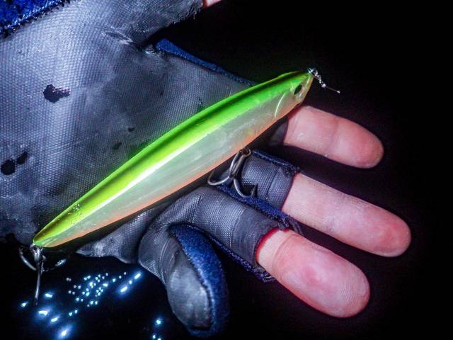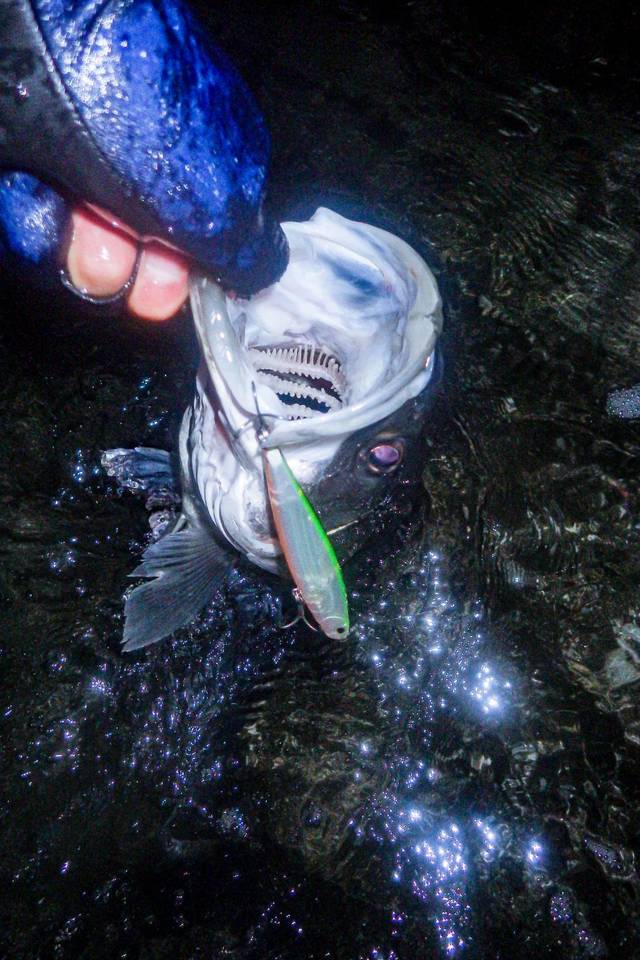 良いサイズのシーバスです。まだ、このルアーの性格が体に入ってないのに。汗。