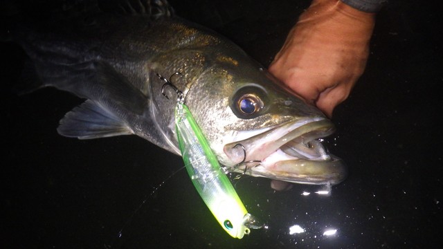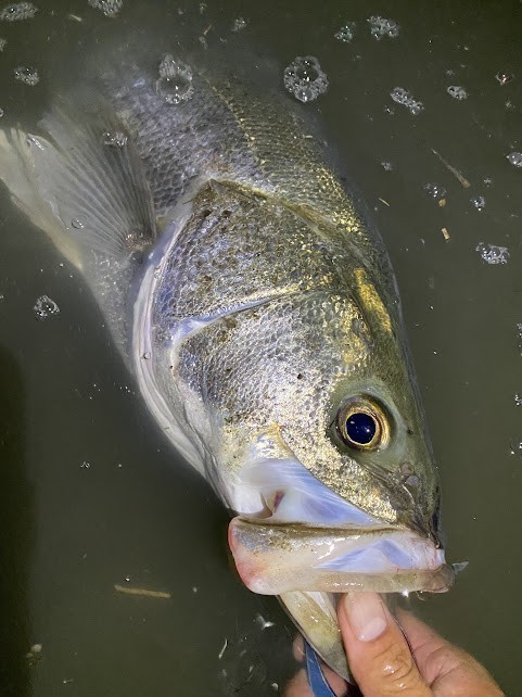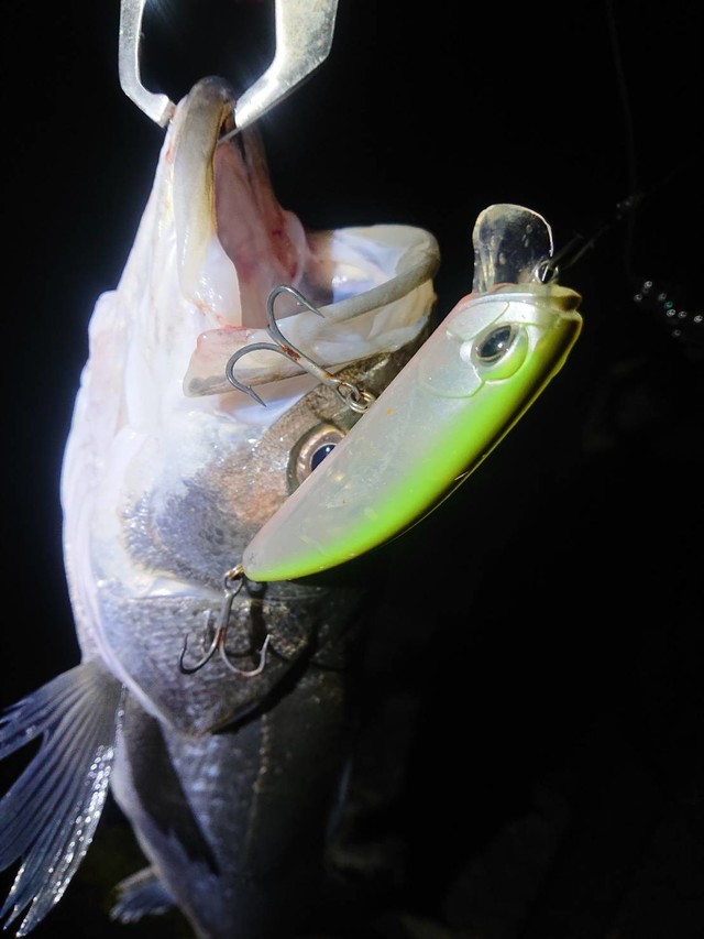 ただ巻きからのクイックリーリングで横スライドのイレギュラーアクション! シーバスに補食スイッチを入れて一発回答!(水戸店かわの)