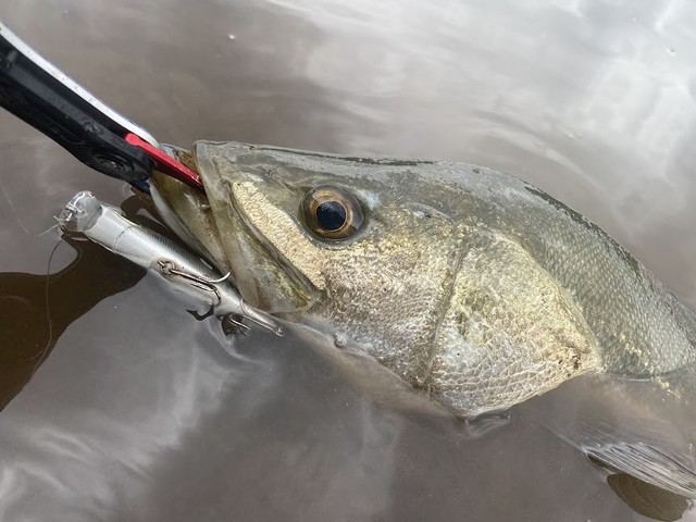 やっとシーバスと言えるサイズをキャッチ!