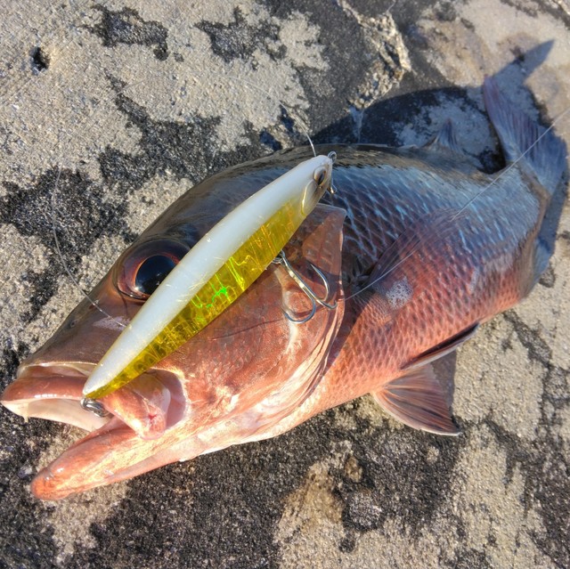 ちょっとした漁港で凄い釣果です。サフェコンのアクションと絶妙なステイの姿勢が南の魚にぶっ刺さるようですね!
