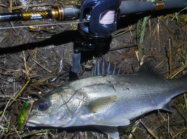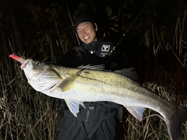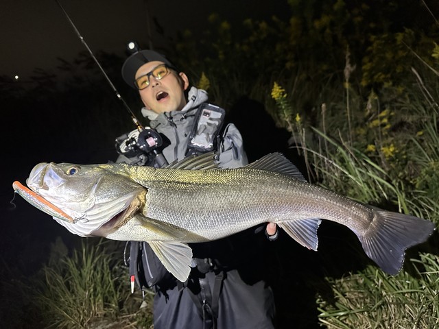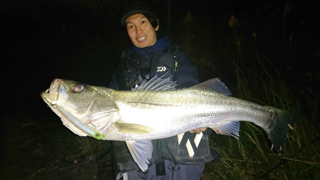 自社ルアーを使用せず(全くつかってません多分)ランカーシーバスを求める、中臺&よしだを尻目にジャッカルテスターも務める佐藤は、ジャッカルライコをキープキャストして…