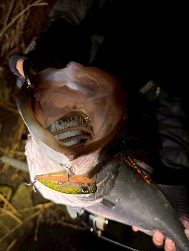 上がってきたのは超ぶっとい70オーバーシーバス!!