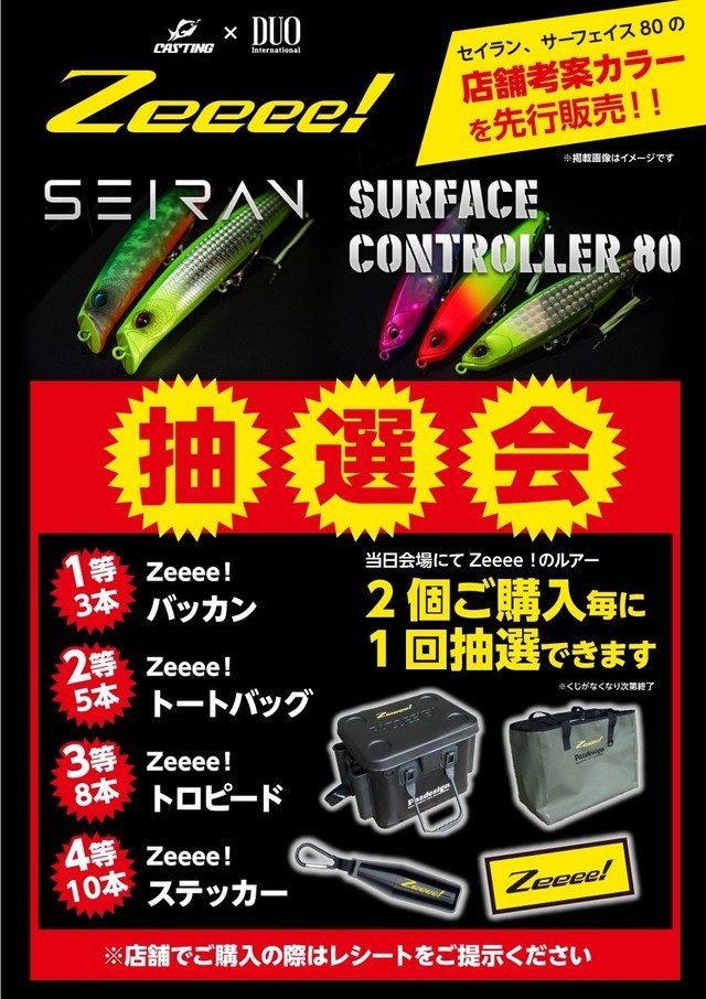 10/20(日)フェス期間中にZeeee!ルアーをお買い求めで、お得な抽選会に参加いただけます!